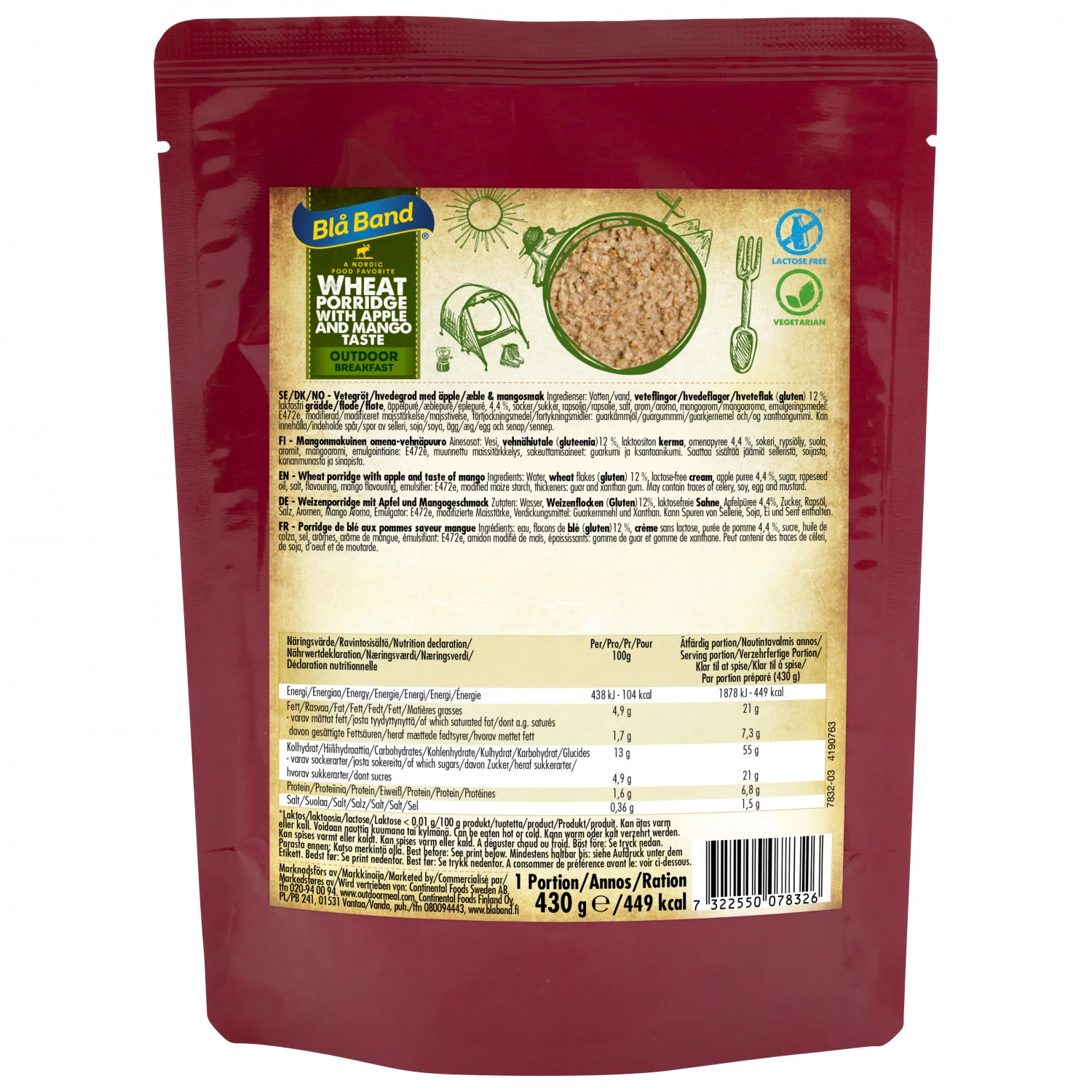 Egal ob man Berggipfel erklimmen möchte, einen Campingausflug plant oder auf Trekkingtour unterwegs ist, mit dem Wheat Porridge with Apple and Mango von Bla Band ist man für das Frühstück bestens versorgt. Der leckere Porridge wird mit heißem Wasser zubereitet und lässt sich nach kurzer Wartezeit genießen. Guten Appetit!